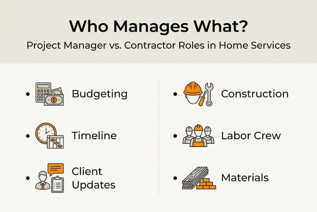 Project management isn't just for corporate offices or construction firms. In the context of home services, it involves planning, budgeting, scheduling, coordinating contractors, risk management, and quality control. It's the full picture of getting from "I want to renovate my kitchen" to "the kitchen is done, on budget, and exactly how I wanted it."
