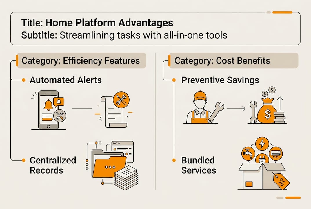 Platforms save money primarily through preventive maintenance reminders that help you avoid costly emergency repairs. When you stay on top of routine tasks like HVAC inspections and plumbing checks, equipment lasts longer and problems get caught early. Consolidated billing and bundled service offers also lower overall expenses compared to booking everything separately. The savings from prevention outweigh fees for most users, making platforms a smart financial investment.